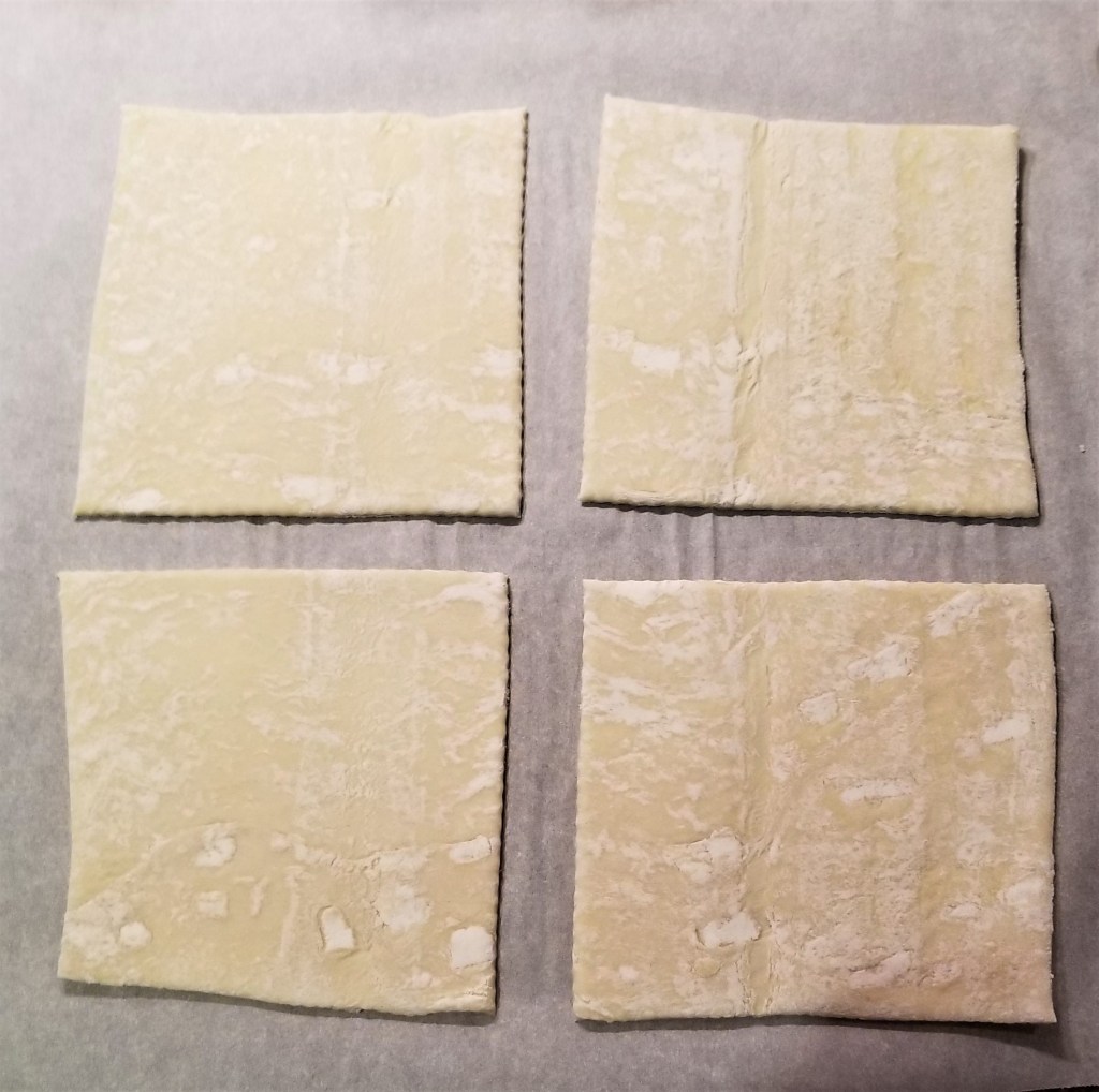 Defrost the puff pastry according to the package directions. I usually leave it on the counter while I am making the filling.