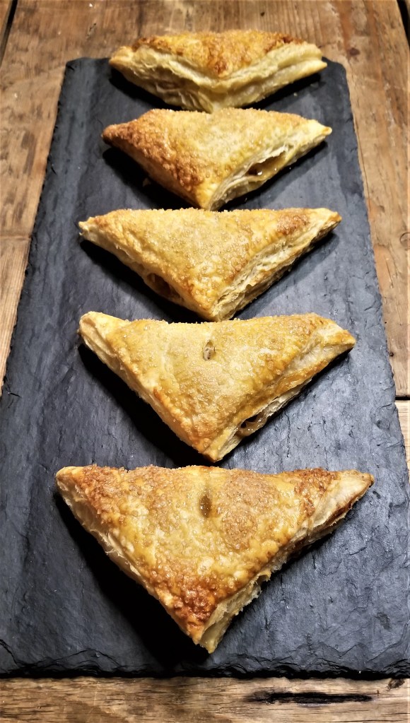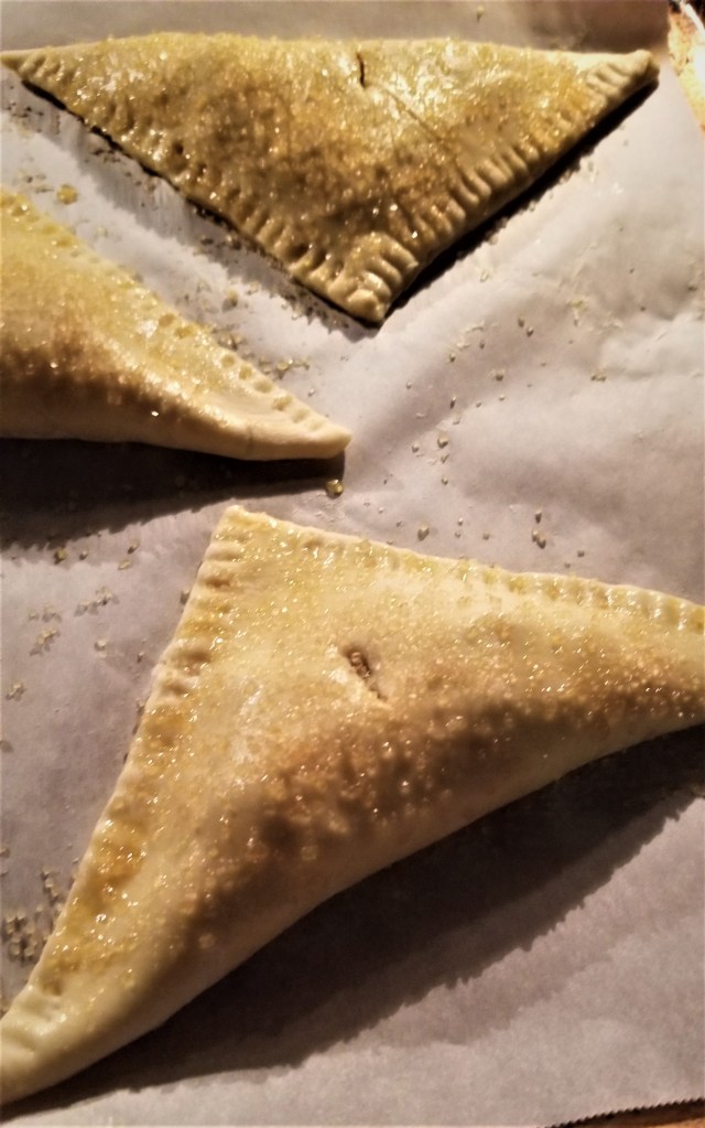 Bake at 400, rotating the pan once, till the turnovers have puffed up, are golden brown, about 20 minutes. If there is some leakage, don’t worry, they will still taste amazing. These are best served within an hour or two when you make them in my opinion but they will keep for a day or two and reheat well. Enjoy!