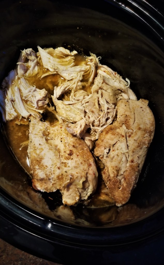 Return the chicken to the slow cooker and set to Keep Warm until you are ready to serve.