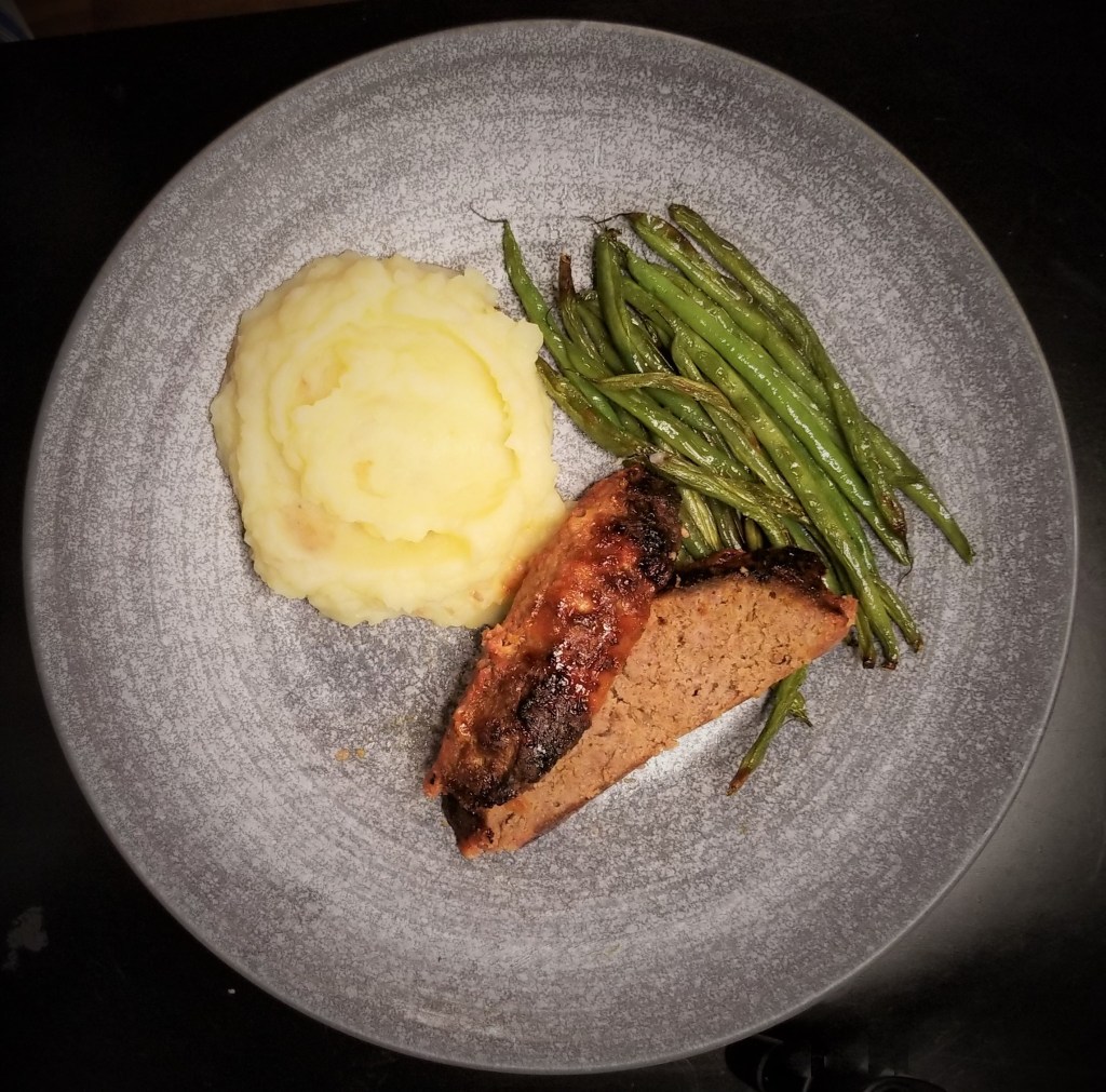 While it cooks, your house smells like heaven and once it hits your plate with some mashed potatoes and green beans, you are mesmerized. I don’t make this often, but when I do, it’s a hit. There are lots of recipes out there for meatloaf and I’ve tried dozens of them and came up with this recipe which is a keeper. Lots of recipes call for ketchup which I found to be kind of pedestrian and I looked for ways to get concentrated flavors into the meatloaf without slathering it with ketchup. I start with 80/20 beef which is the single most important tip for good, moist meatloaf. If you try it with a blend that is super lean, you will have a dry brick for dinner. Turkey meatloaf is a great option if you don’t want to use beef. Don’t go with super lean or you will give up lots of flavor. I mix in sautéed onions, breadcrumbs, eggs, stock and Worcestershire sauce and then bake it so the ends are crispy and it’s brown on top. It’s full of flavor and if you’re lucky enough to have leftovers, is great on a sandwich the next day. I go for the traditional sides but macaroni & cheese would be an amazing addition.
