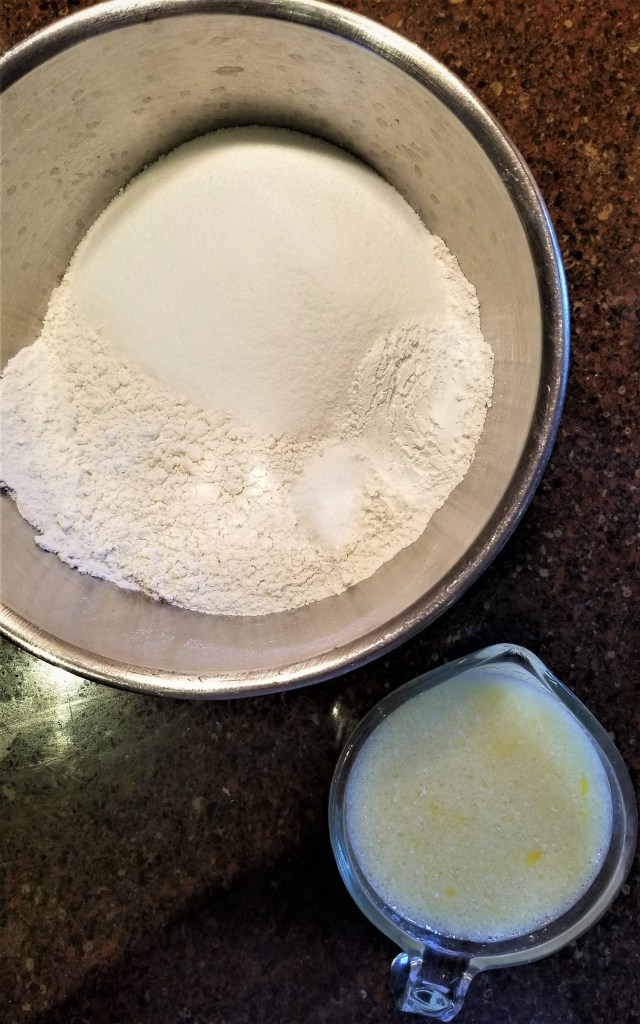Combine the flour, baking powder, salt and white sugar together in a large bowl. Stir together milk, buttermilk, oil, eggs and lemon zest in a separate bowl.