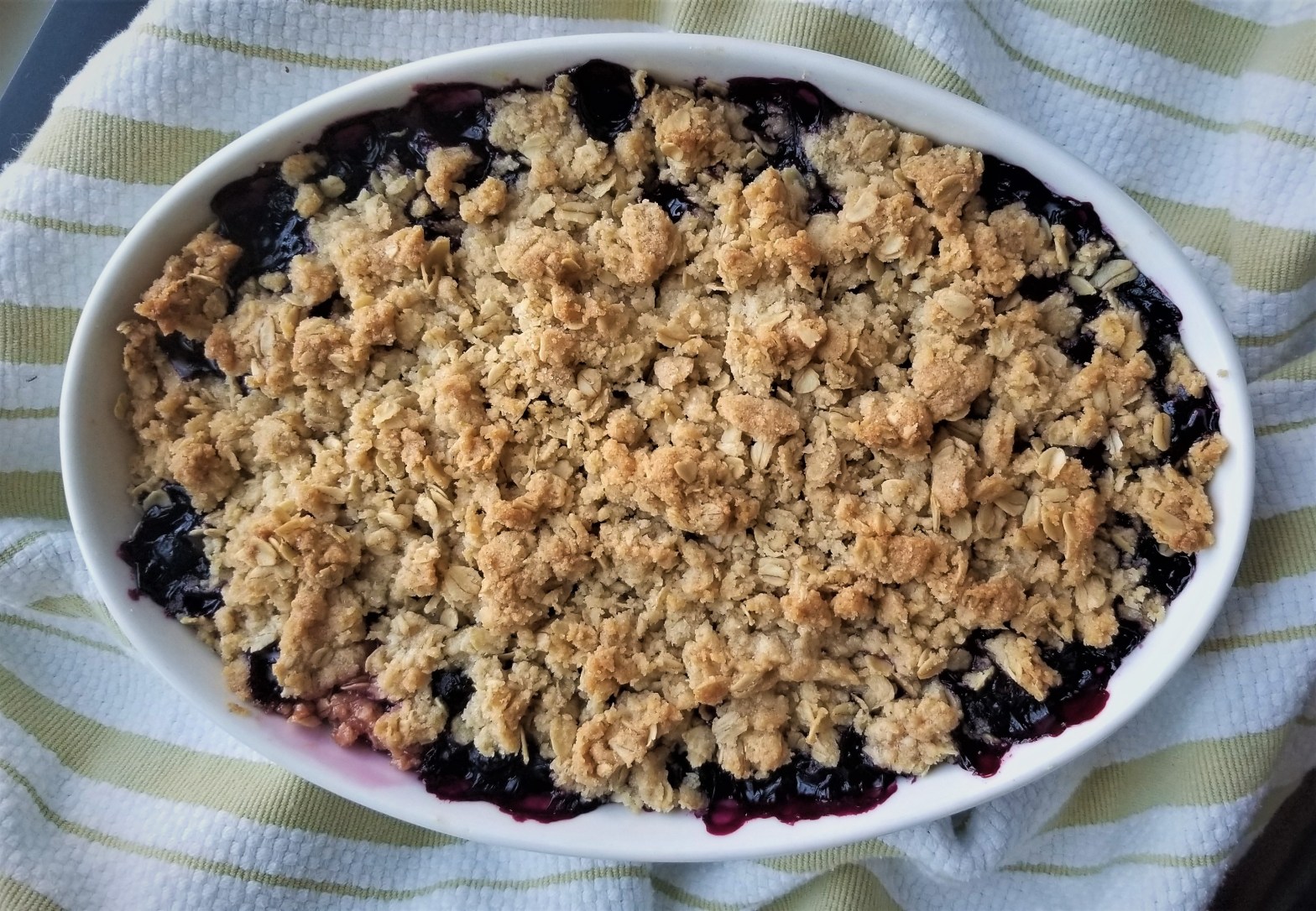 It’s Summer fruit season which means crumbles are going to be a frequent dessert in our house. Blueberries, peaches, cherries – this recipe works no matter what your favorite Summer fruit is!
